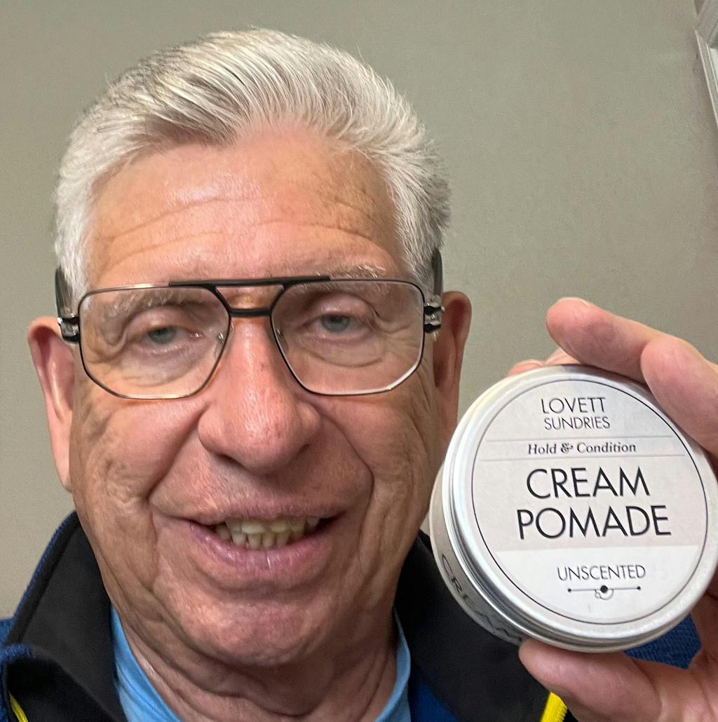 I am a 78 year-old grandfather with untamed, thick, bushy grey hair that is difficult to comb even with a sturdy brush and the most greasy pomade. Lovett Sundries Cream Pomade is the most outstanding hair product that I have ever used because it isn't sticky, can be easily scraped from its container, and fully absorbs in my hair. It has exceptional features that can effectively allow me to comb my thick hair in multiple directions. It also brightens the color of my hair and has a pleasant smell. I plan to only use this pomade on my hair in the future! The price of this product is a huge bargain!!!