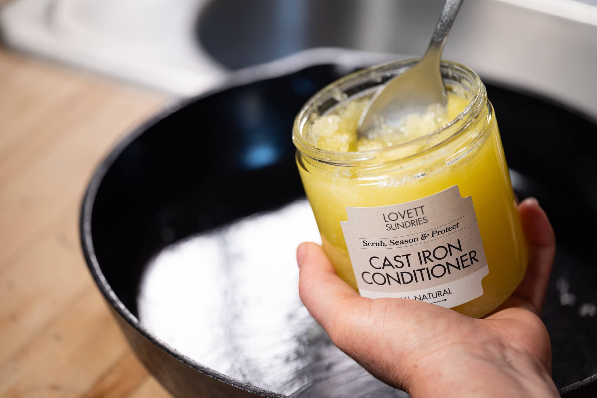 I used this to re-season some cast iron pans which haven't seen use in a few years and now they're better than they have ever been! I used Chris Kimball's method of stovetop conditioning which I can highly recommend (I would suggest using tongs to hold the paper towels). I had previously used pure flaxseed oil in the oven but this worked much better!